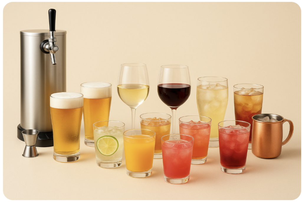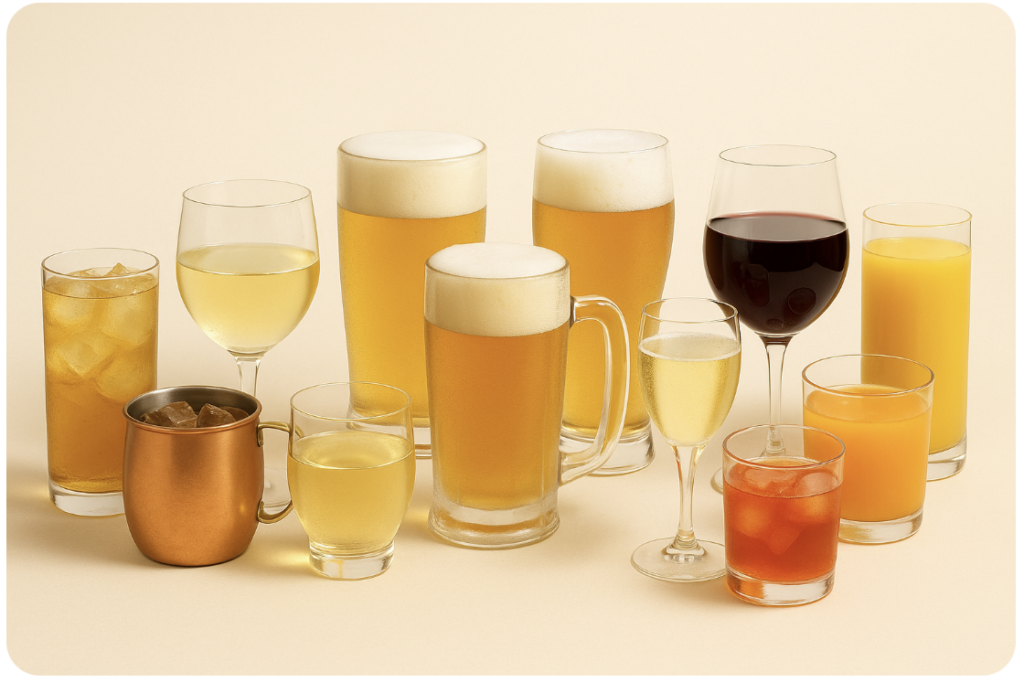 ハイボール・カシス系・ワイン・梅酒など、定番のお酒を気軽に楽しめる飲み放題プラン